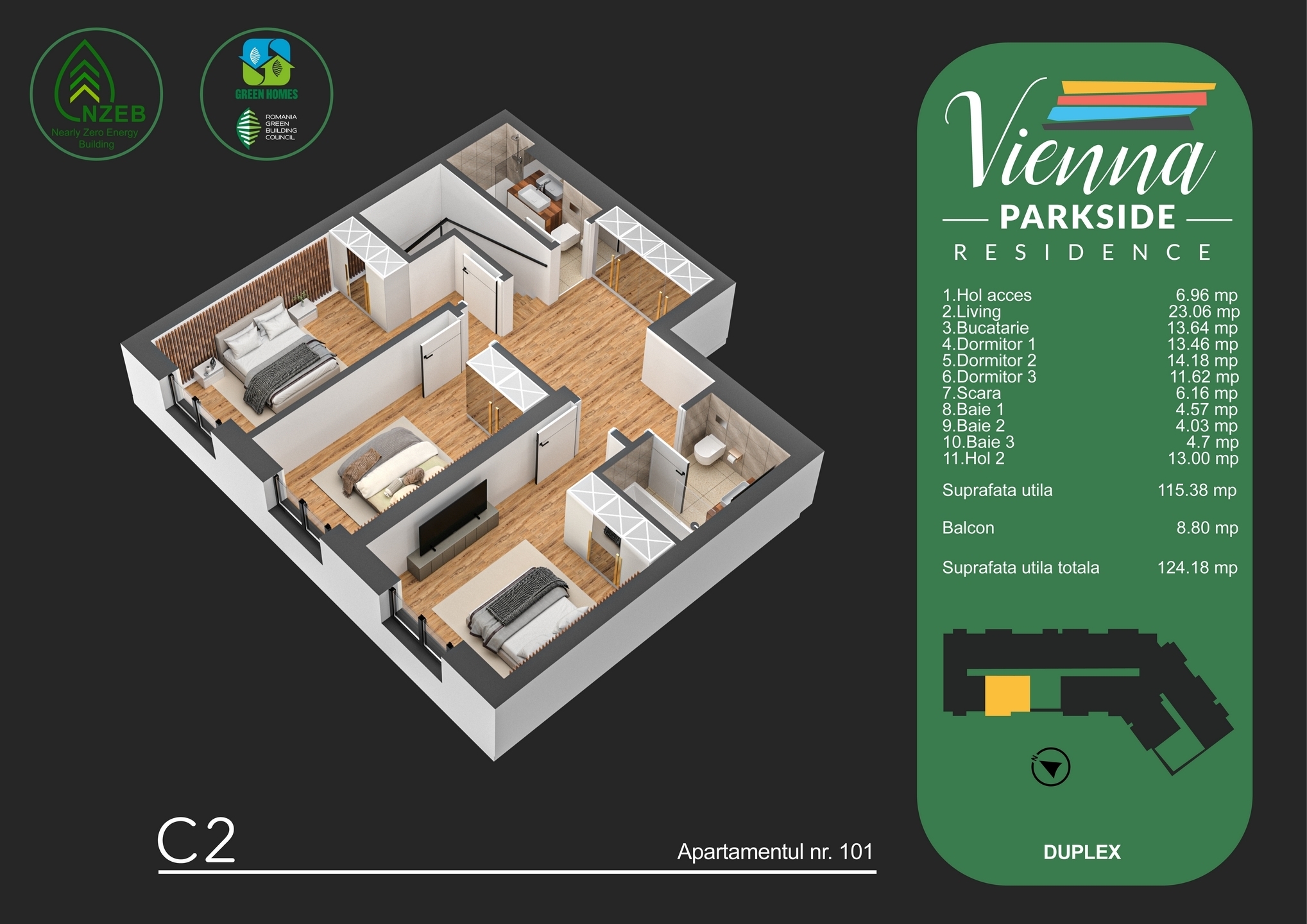Suprafata utila totala: 124.18 mp