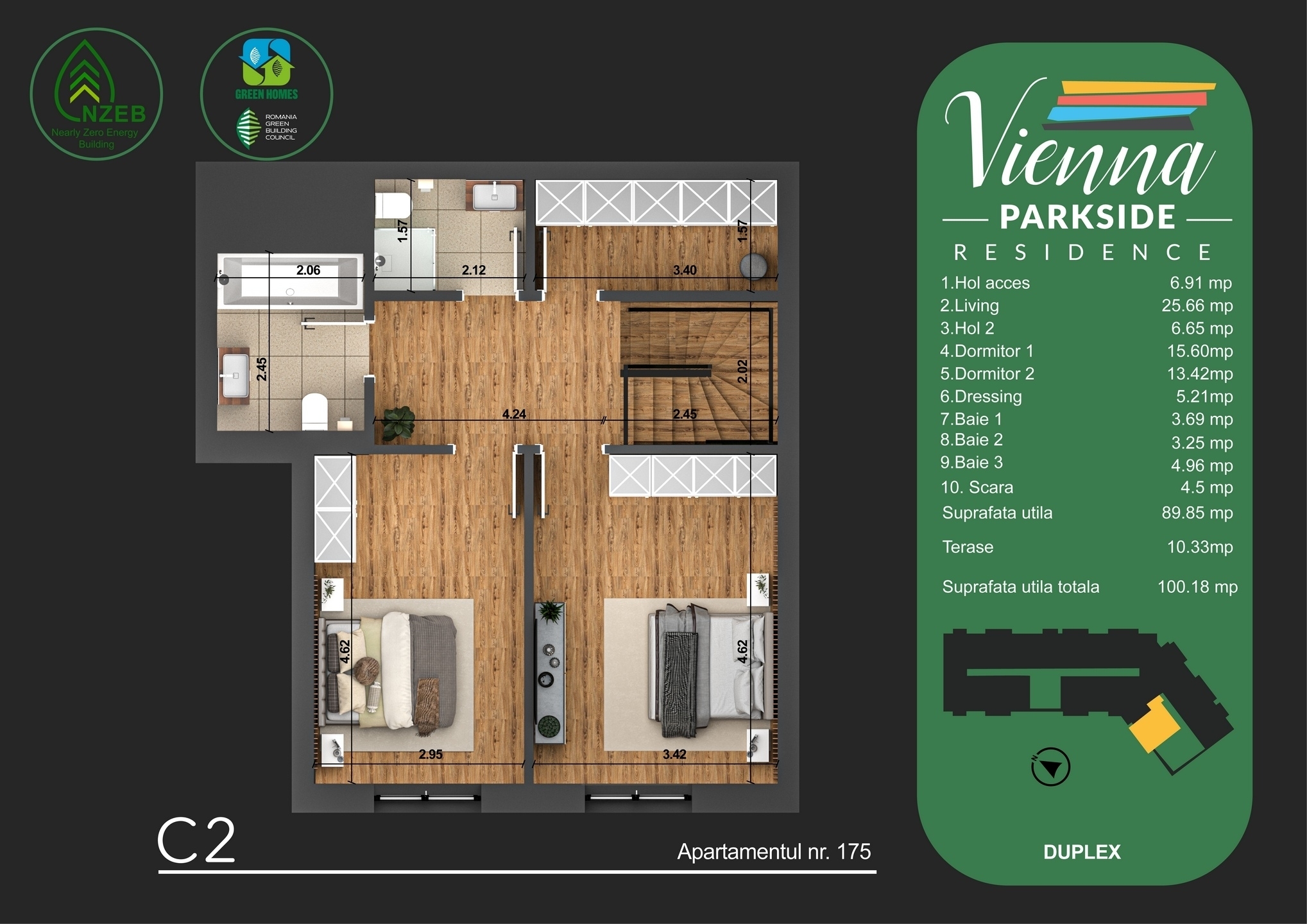 Suprafata utila totala: 100.18 mp